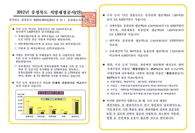 충청북도 재정공시 제2012-203호(2012. 8. 31.)