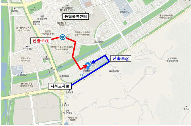 서청주 IC 출발 | 서청주IC삼거리에서 좌회전(보은방면) → 서청주교사거리에서 우회전(버스터미널 방면) → 지북교차로에서 직진(목련공원 방면) → 목련로62번길사거리에서 좌회전(충북학사방면) → 충북미래여성플라자 도착 |